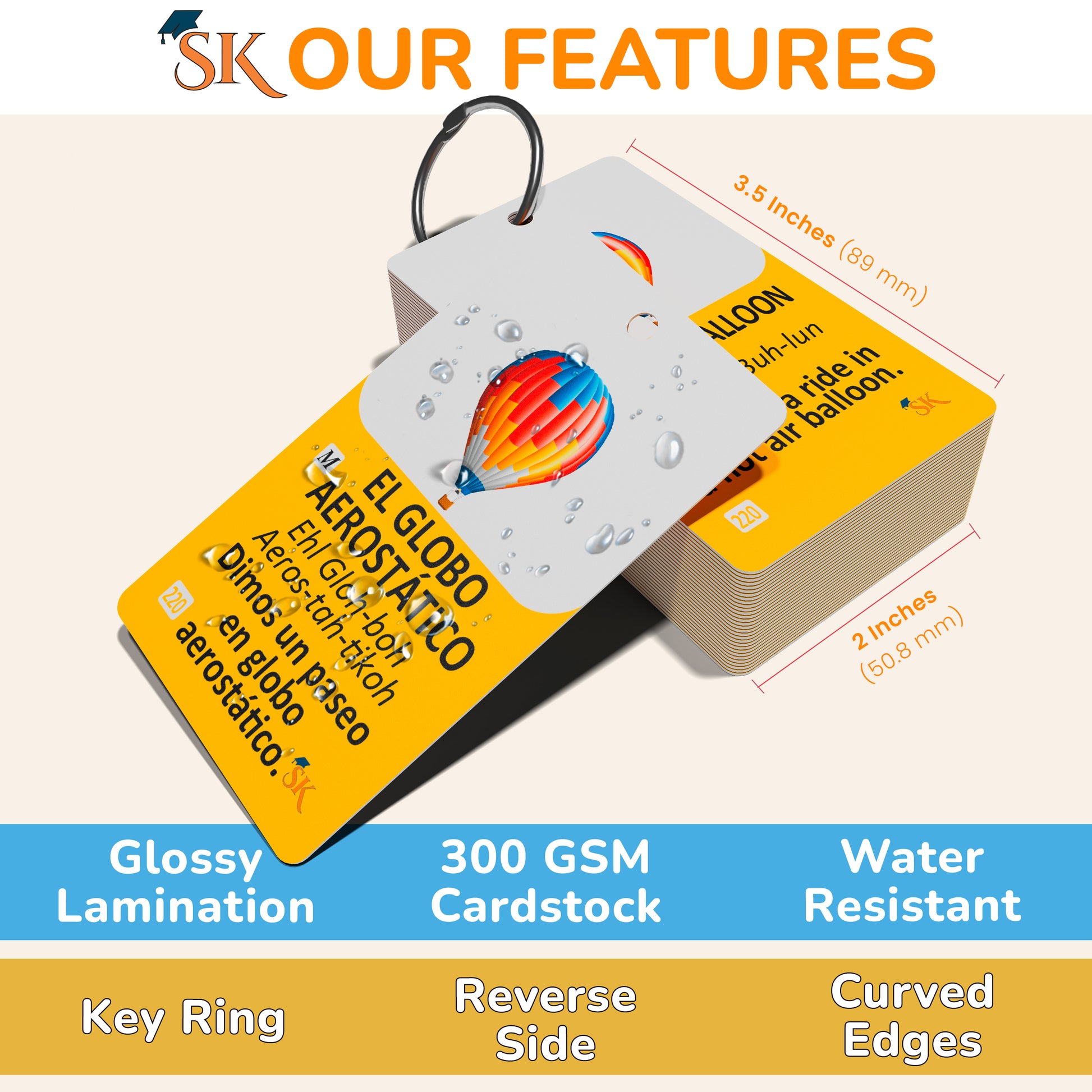 This set is so well done and worth the money. The cards are a good size, well organized, easy to read, and especially great for verb conjugation and general vocabulary. They come with sturdy rings which help stay organized. Super handy set! Highly recommend.